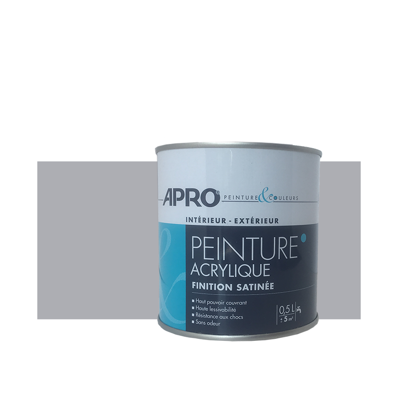 Peinture acrylique Apro satin multi-supports intérieur extérieur pour murs, plafonds, boiseries, plinthes de toutes les pièces à vivre de la maison (séjour, chambre ,bureau ,dressing). Convient également pour les bois extérieurs.