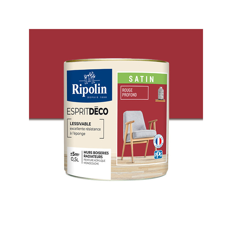 Peinture RIPOLIN Esprit Déco murs, plafonds, boiseries et radiateurs rouge profond satin 0,5L