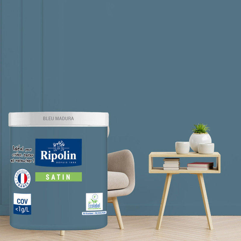 Peinture testeur RIPOLIN Esprit Déco murs, plafonds, boiseries et radiateurs bleu madura satin 75ML