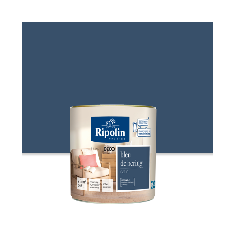 Peinture RIPOLIN Esprit Déco murs, plafonds, boiseries et radiateurs bleu bering satin 0,5L