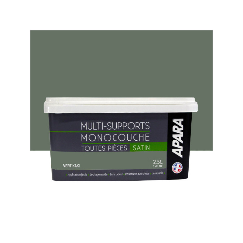 Peinture Apara multi-supports Murs, plafonds, boiseries, plinthes... vert kaki satin 2,5L