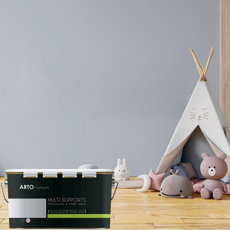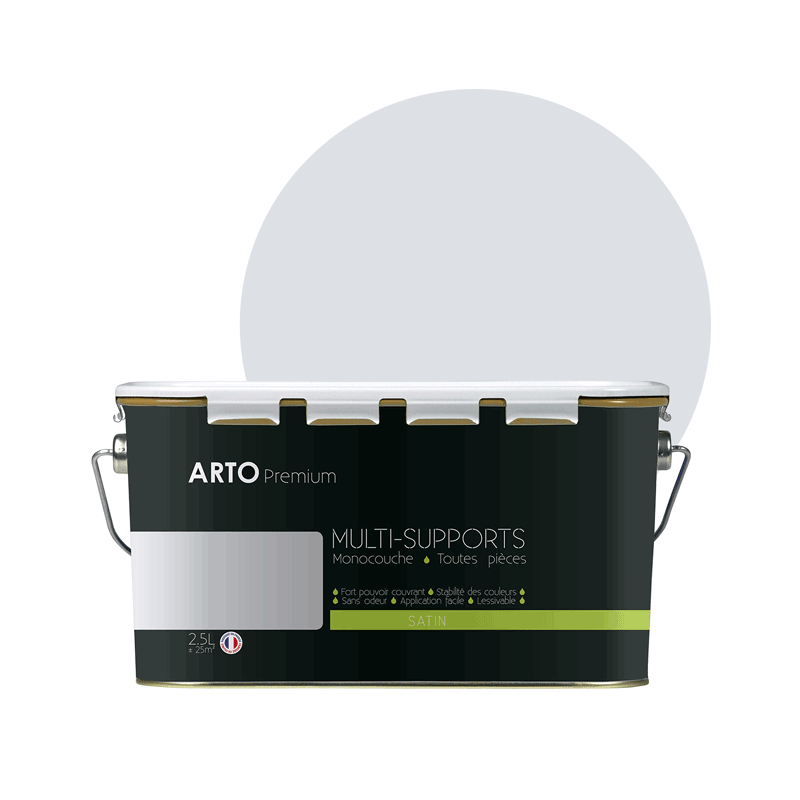 Peinture ARTO premium multi - supports murs, plafonds, boiseries, plinthes et radiateurs gris lunaire satin 2,5 L
