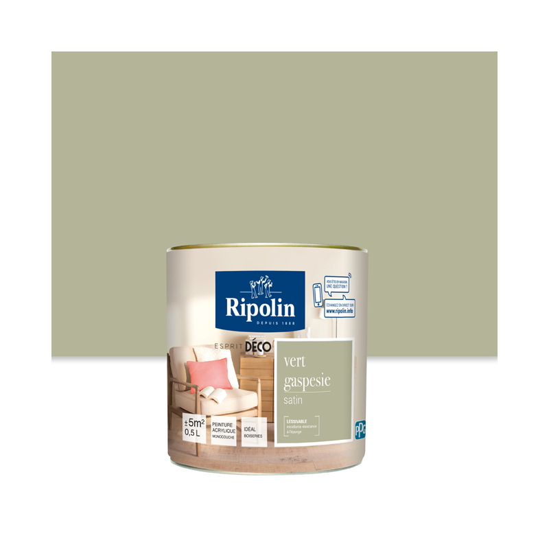 Peinture RIPOLIN Esprit Déco murs, plafonds, boiseries et radiateurs vert gaspesie satin 0,5L