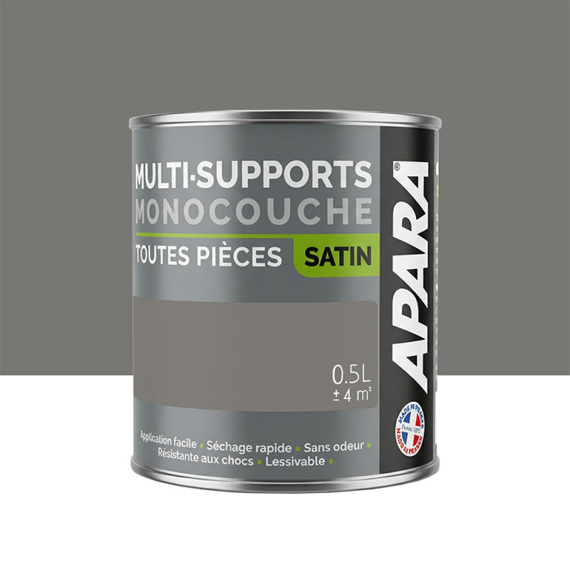 Peinture Apara multi-supports Murs, plafonds, boiseries, plinthes… gris clair satin 0,5L
