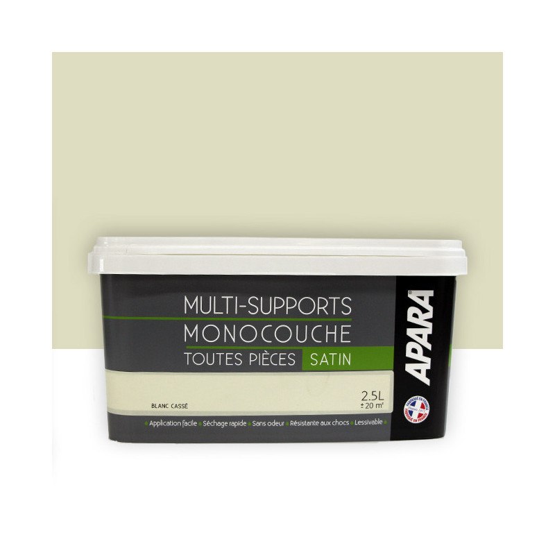 Peinture Apara multi-supports Murs, plafonds, boiseries, plinthes...blanc cassé satin 2,5L
