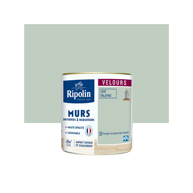 Peinture Ripolin Murs Boiseries et Radiateurs Vert Palatino Velours 0,5L