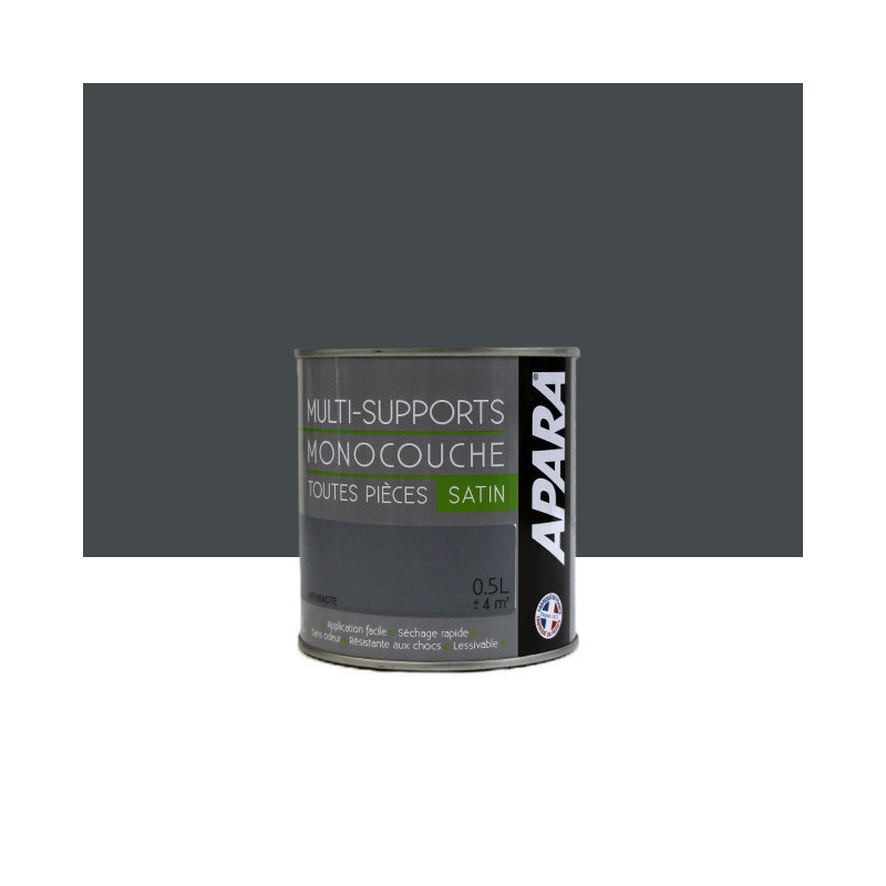 Peinture Apara multi-supports Murs, plafonds, boiseries, plinthes... gris anthracite satin 0,5L