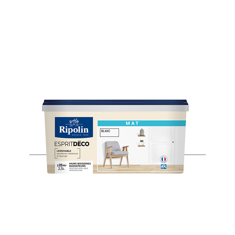 Peinture RIPOLIN Esprit Déco murs et plafonds, boiseries et radiateurs blanc mat 2.5L