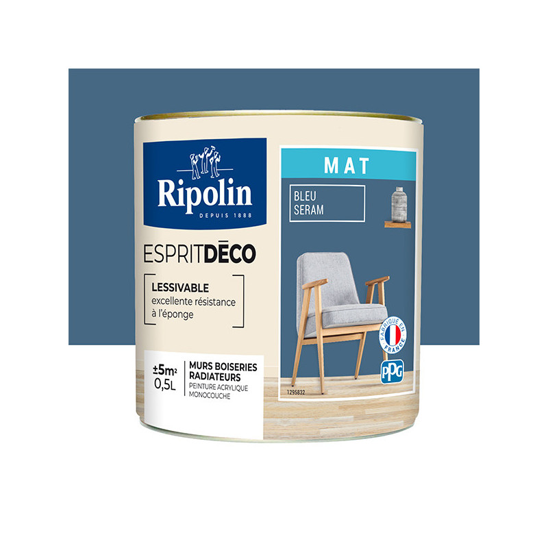 Peinture RIPOLIN Esprit Déco murs et plafonds, boiseries et radiateurs bleu seram mat 0.5L