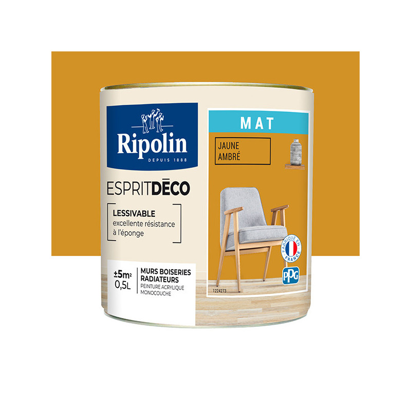 Peinture RIPOLIN Esprit Déco murs et plafonds, boiseries et radiateurs jaune ambré mat 0.5L