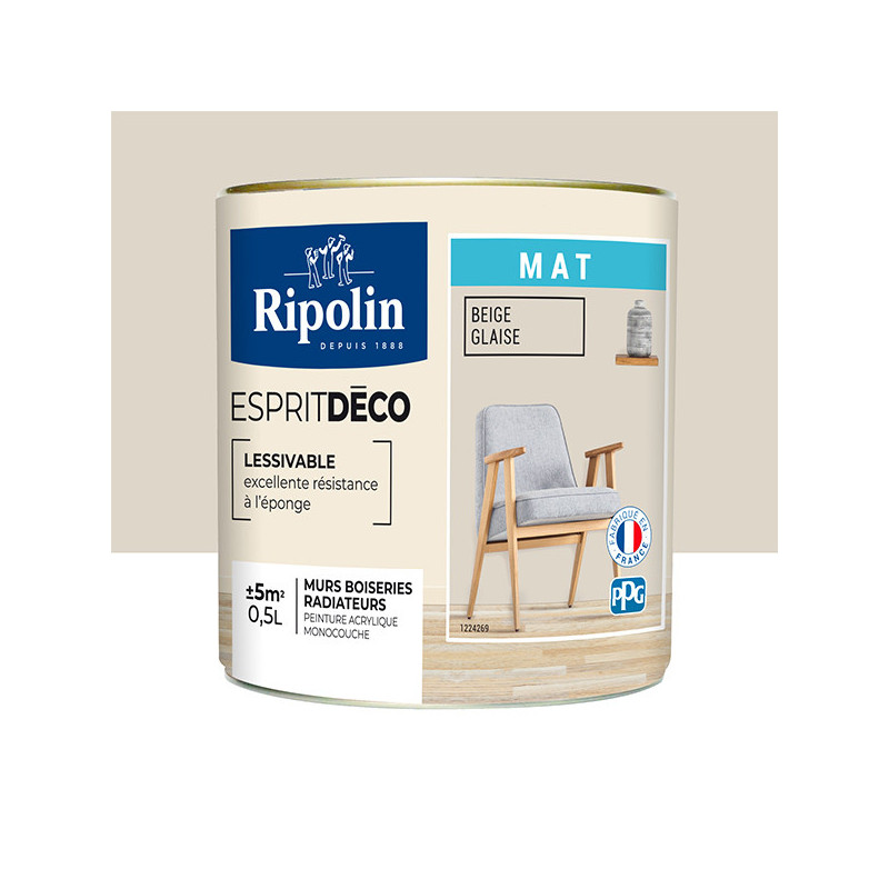 Peinture RIPOLIN Esprit Déco murs et plafonds, boiseries et radiateurs beige glaise mat 0.5L