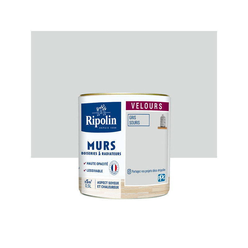 Peinture Ripolin Murs Boiseries et Radiateurs Gris Souris Velours 0,5L