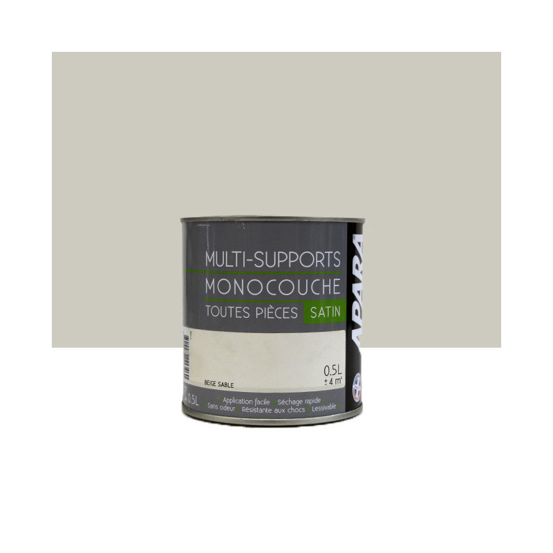 Peinture Apara multi-supports Murs, plafonds, boiseries, plinthes... beige sable satin 0,5L