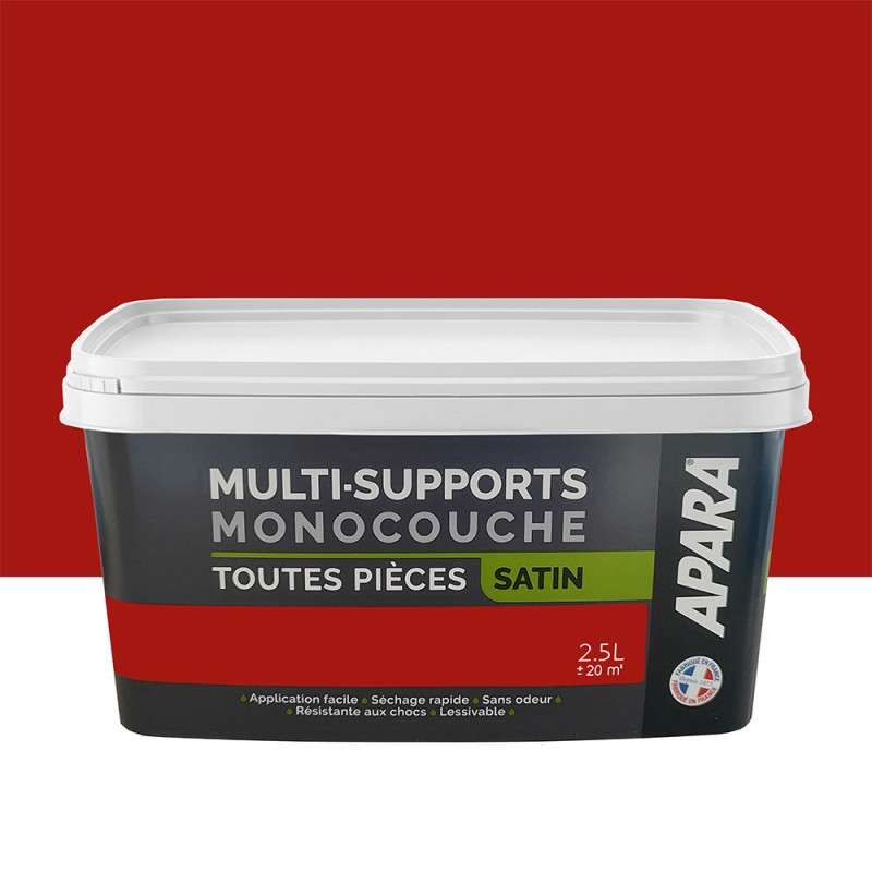 Peinture Apara multi-supports Murs, plafonds, boiseries, plinthes… rouge rubis satin 2,5L
