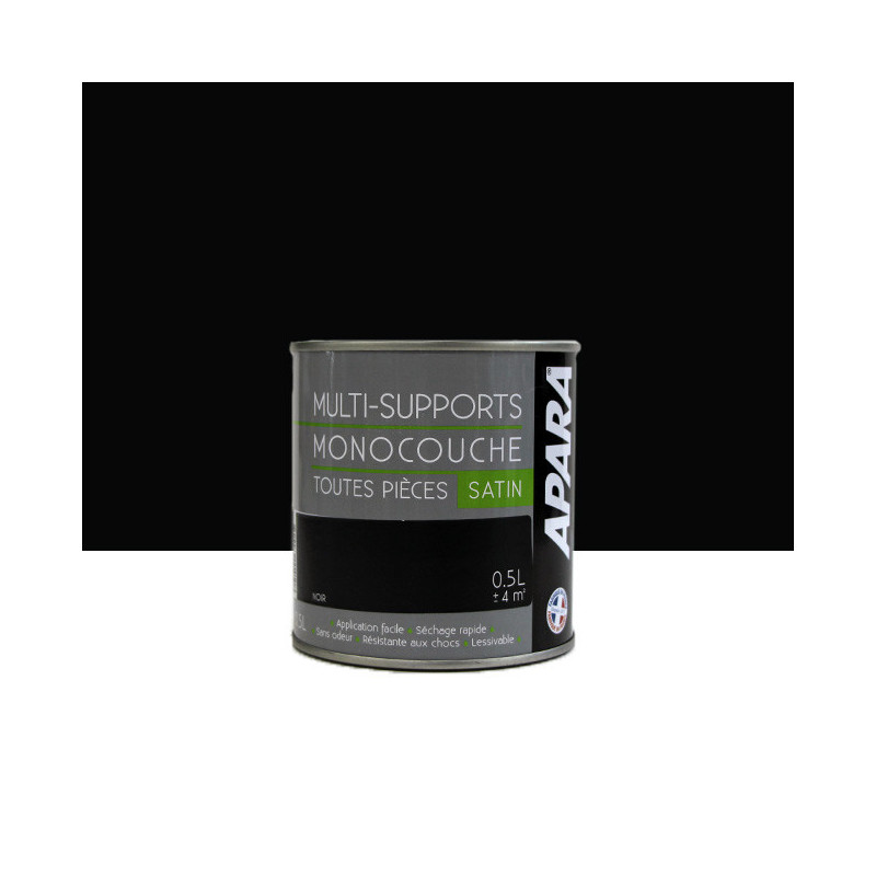 Peinture Apara multi-supports Murs, plafonds, boiseries, plinthes... noir satin 0,5L