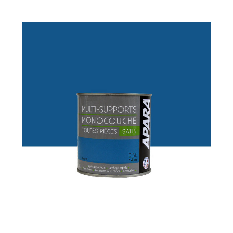 Peinture Apara multi-supports Murs, plafonds, boiseries, plinthes... bleu pacific satin 0,5L
