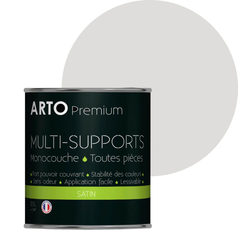 Peinture ARTO premium multi-supports murs, plafonds, boiseries, plinthes et radiateurs gris clair satin 0,5 L