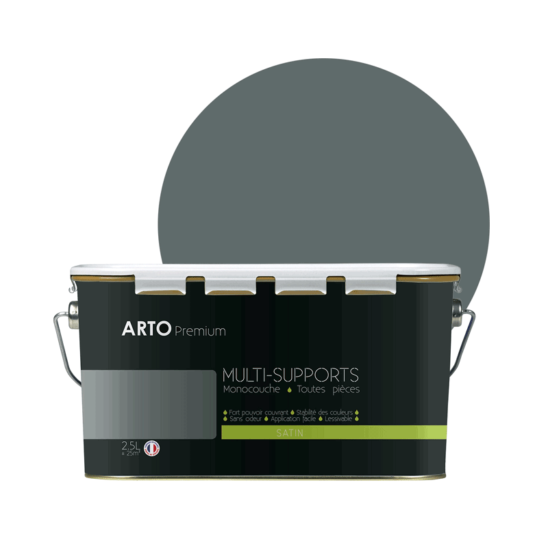 Peinture ARTO premium multi - supports murs, plafonds, boiseries, plinthes et radiateurs gris polaire satin 2,5 L
