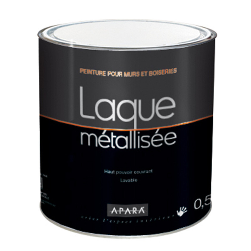 Peinture métallisée pour murs et boiseries couleur argent. Cette peinture vous permettra de de créer un effet de décoration sur votre pan...