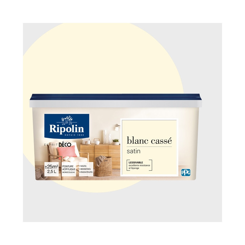 Peinture RIPOLIN Esprit Déco murs, plafonds, boiseries et radiateurs blanc cassé satin 2,5L