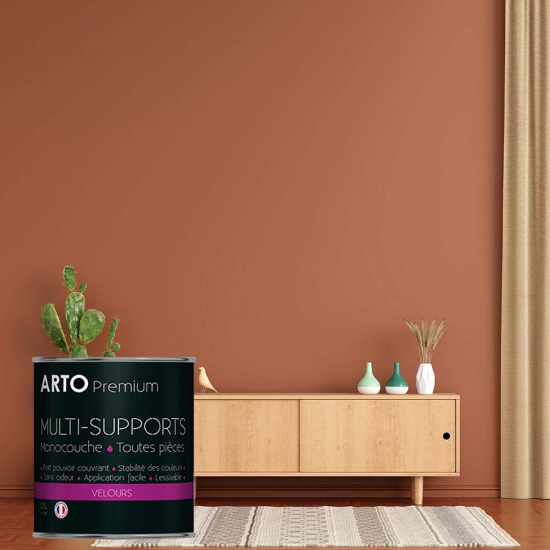 Peinture ARTO premium multi-supports murs, plafonds, boiseries, plinthes et radiateurs terracotta velours 0,5 L