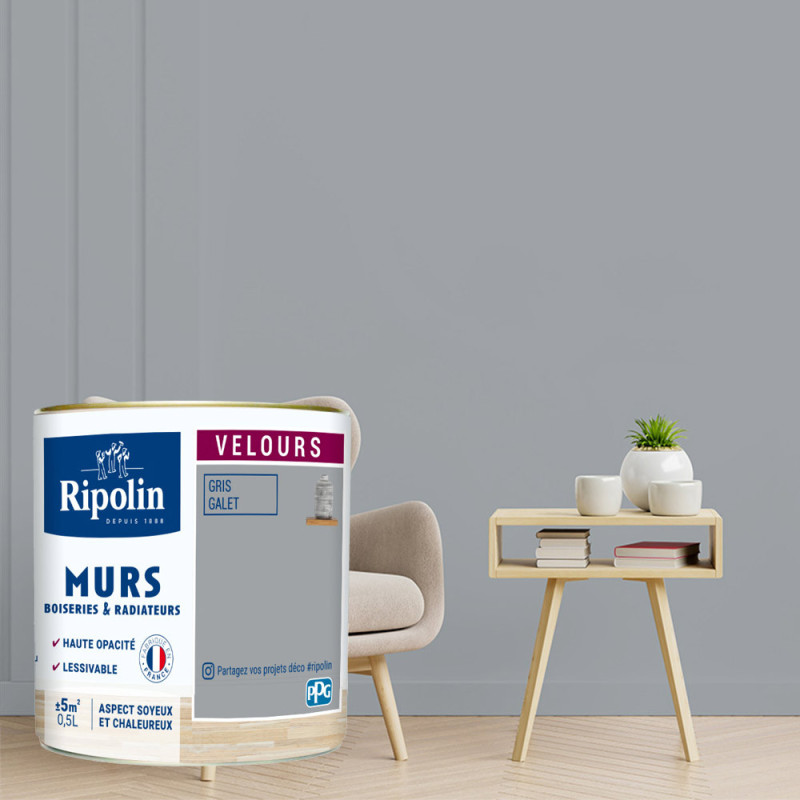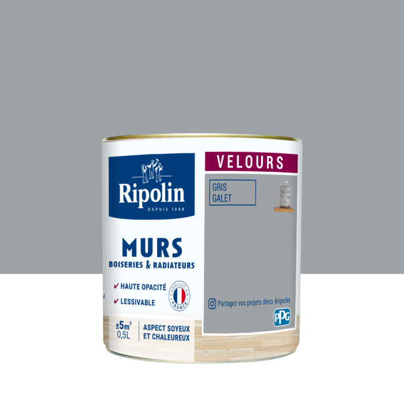 Peinture RIPOLIN Esprit Déco murs, plafonds, boiseries et radiateurs gris galet velours 0.5L