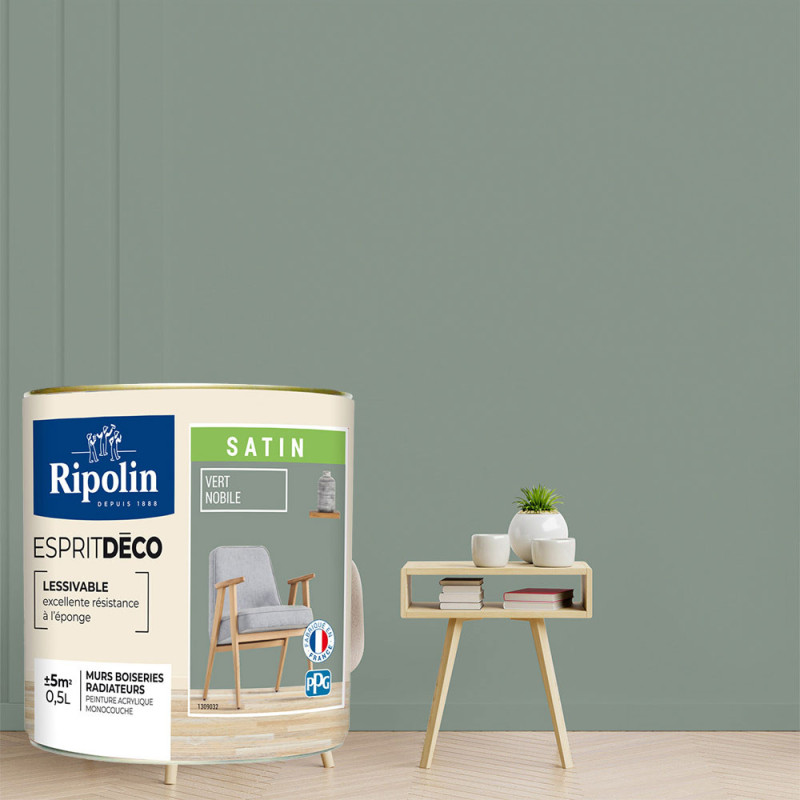 Peinture RIPOLIN Esprit Déco murs, plafonds, boiseries et radiateurs vert nobile satin 0,5L