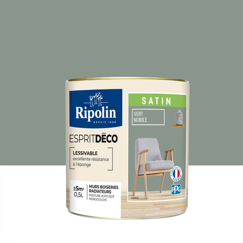 La gamme RIPOLIN Esprit Déco vert nobile satin permet de redécorer toutes les pièces pour suivre toutes les idées et toutes les envies....