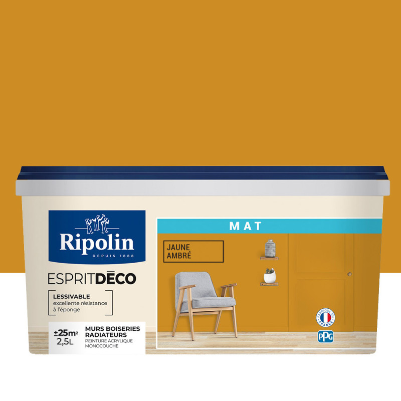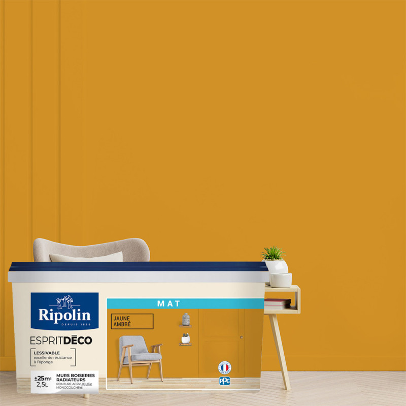 Peinture Ripolin Esprit Déco jaune ambre mat 2.5L