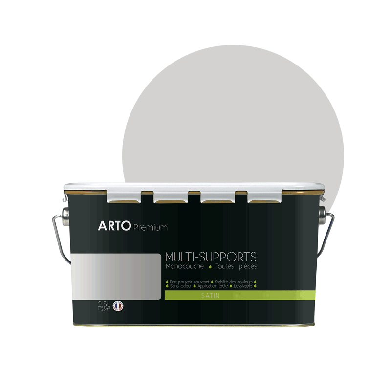 Peinture ARTO premium multi - supports murs, plafonds, boiseries, plinthes et radiateurs gris clair satin 2,5 L