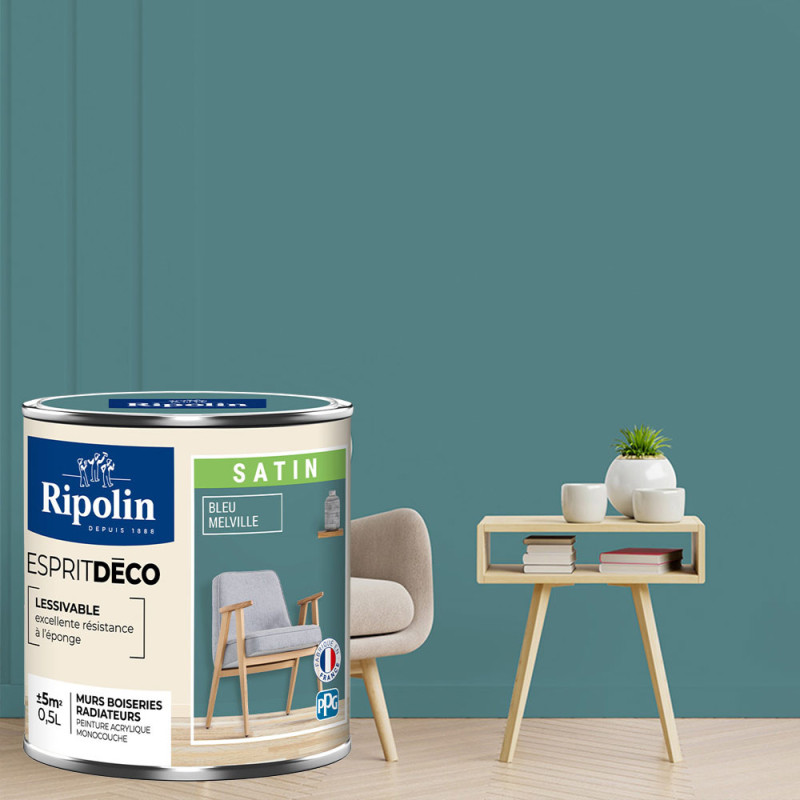 Peinture murs boiseries radiateurs Esprit Déco Ripolin bleu melville satin 0.5L