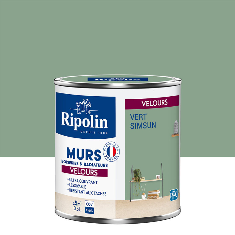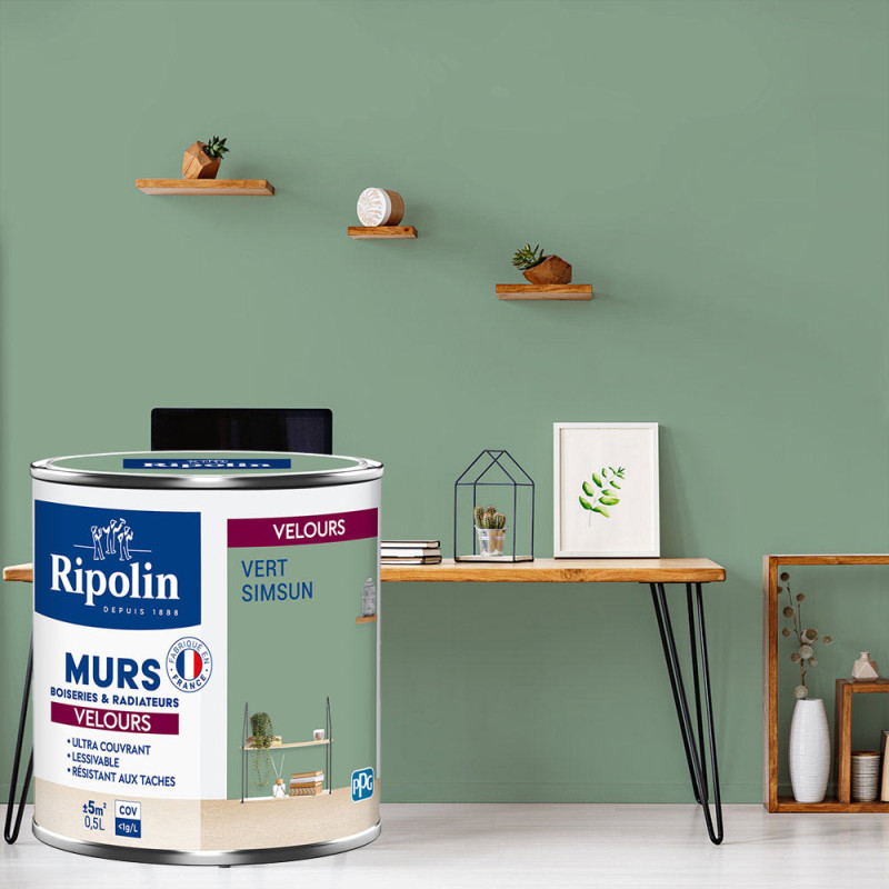Peinture murs boiseries radiateurs Esprit Déco Ripolin vert simsun 0.5L velours