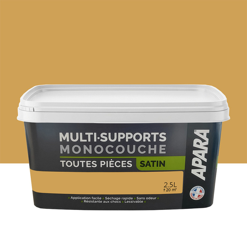 Peinture Apara multi-supports murs, plafonds, boiseries, plinthes… Jaune miel satin 2,5L