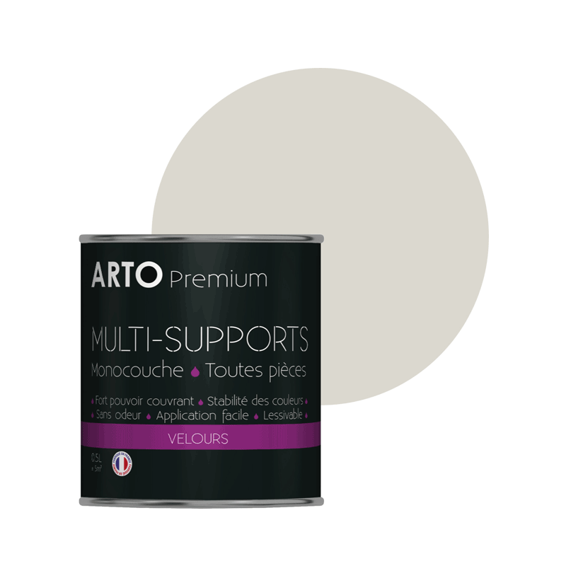 Peinture ARTO premium multi - supports murs, plafonds, boiseries, plinthes et radiateurs blanc minéral velours 0,5 L