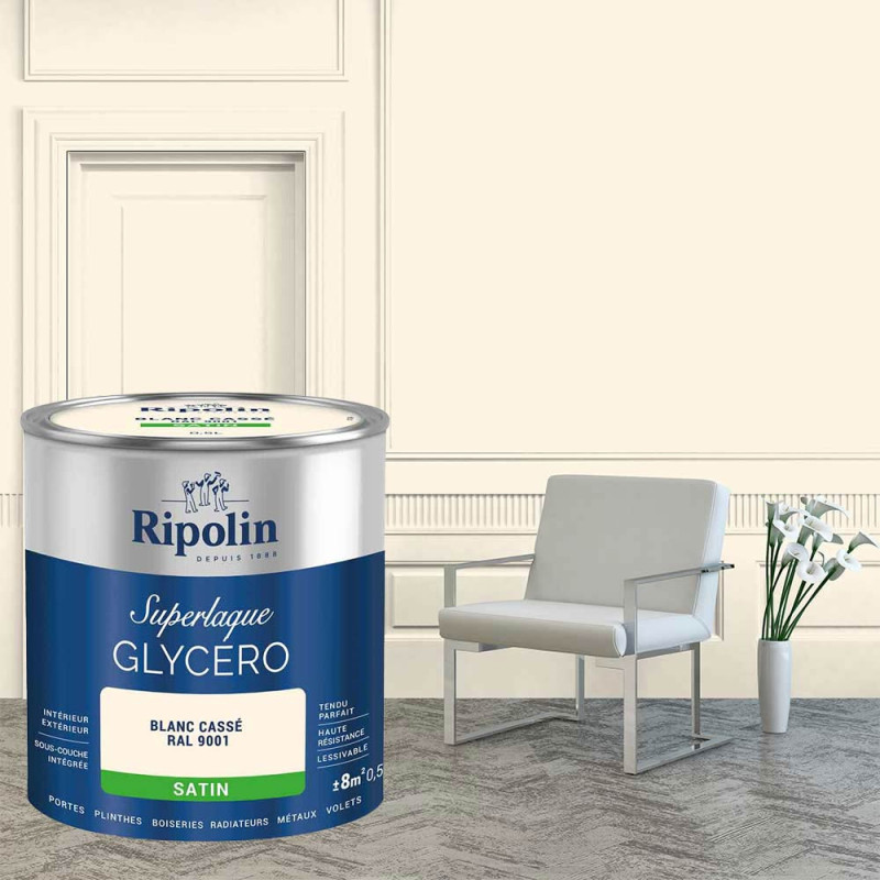 Peinture Ripolin Superlaque Glycéro satin blanc cassé 0.5L