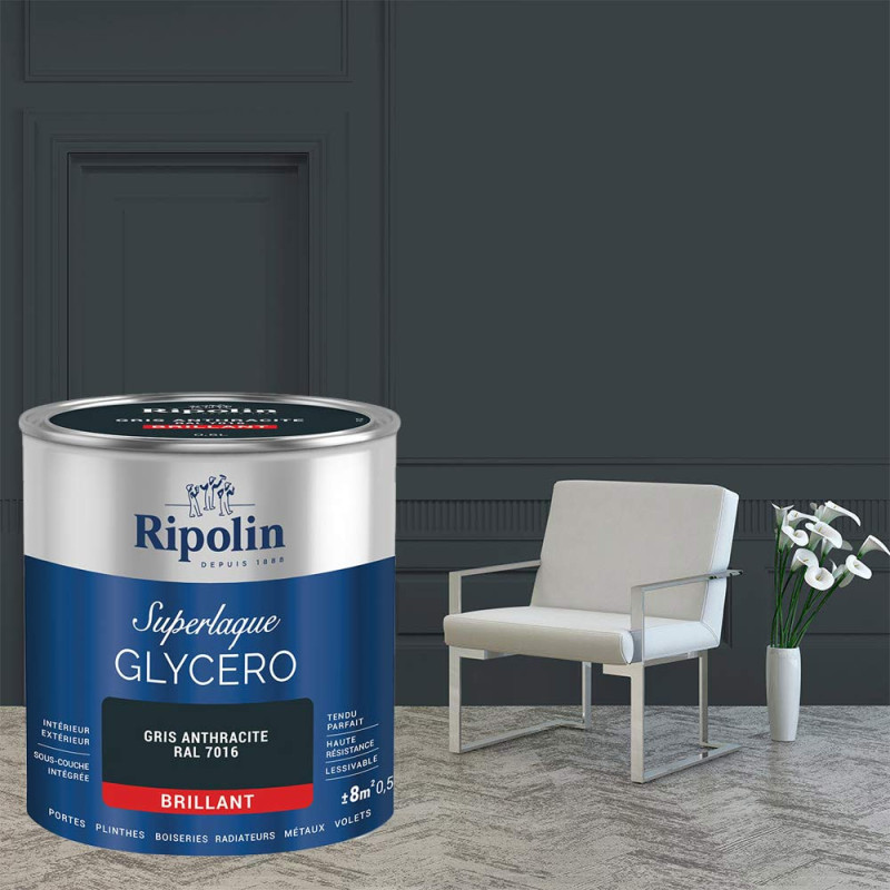 Peinture Ripolin Superlaque Glycéro brillant gris anthracite 0.5L
