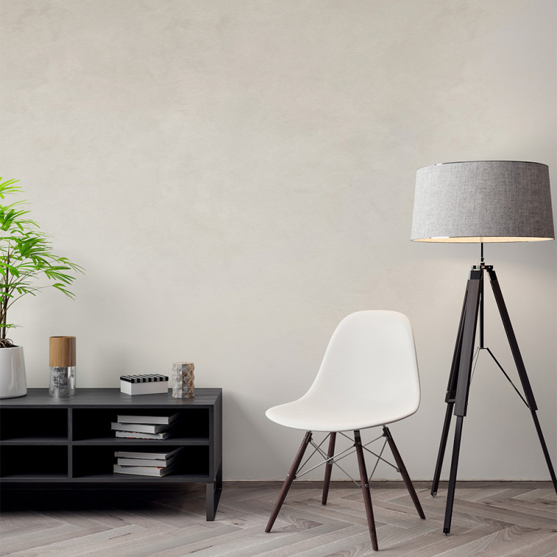 Peinture épaisse effet béton brut, teinte Blanc cassé Moscou. Application à la spatule en version monocolore (deux couches) ou bicolore (base foncée puis superposition des deux teintes). Idéale pour murs, sols, plans de travail, crédences, douches, etc. Résultat modulable à volonté tant que le produit reste frais. Trois protections disponibles selon l’usage : mat, ciré ou ultra résistant.