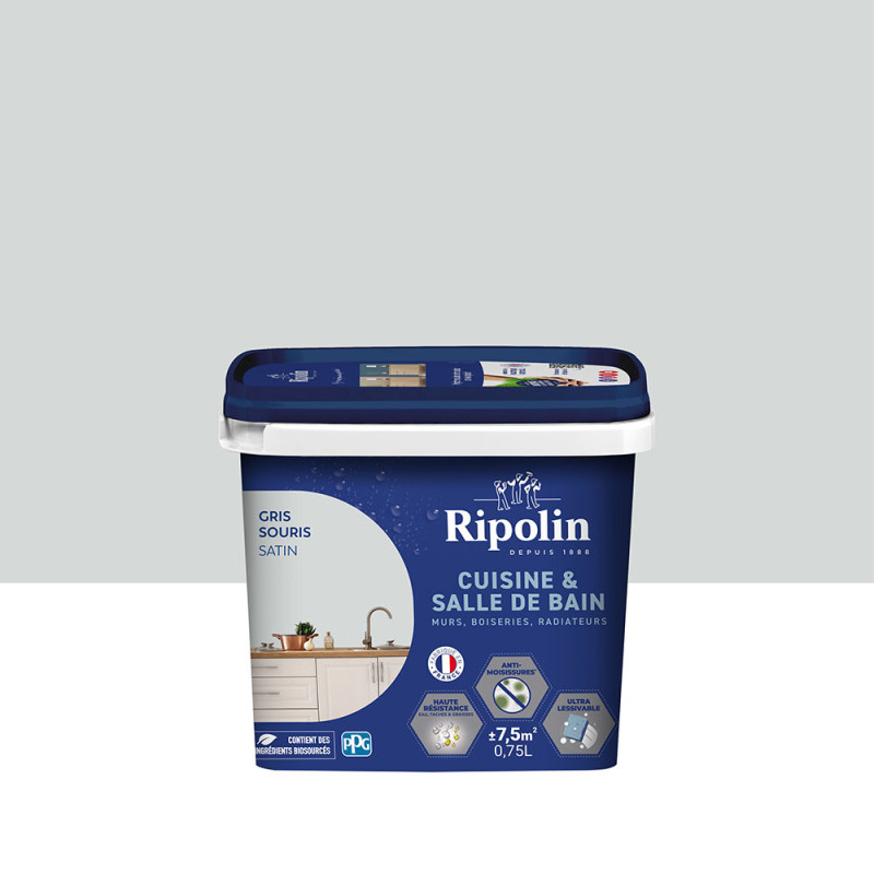 Peinture Ripolin Cuisine & Salle de Bain Gris souris Satin 0.75L