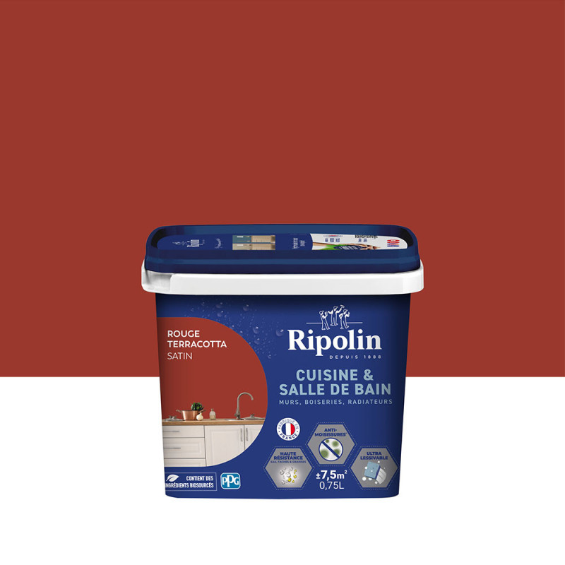 Peinture Ripolin Cuisine & Salle de Bain Rouge Terracotta Satin 0.75L