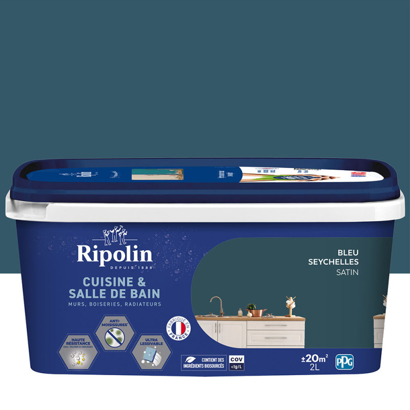 Peinture Ripolin Cuisine & Salle de Bain Bleu Seychelles Satin 2L