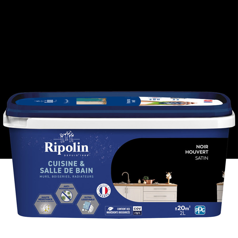Peinture Ripolin Cuisine & Salle de Bain Noir Houvert Satin 2L