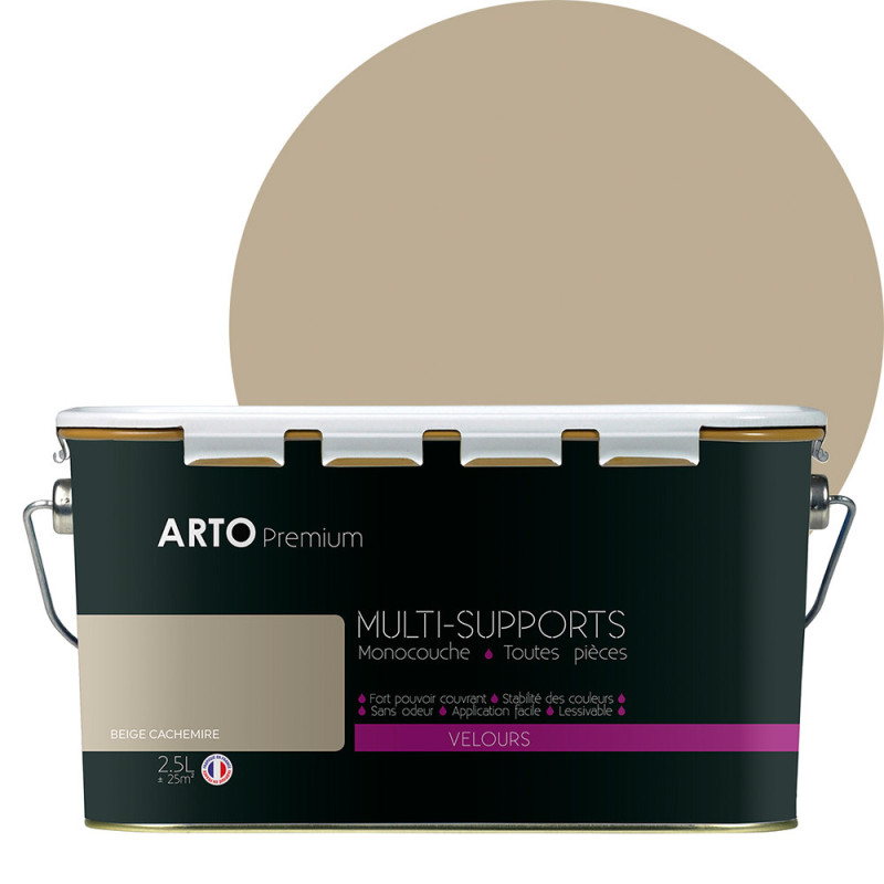 Peinture ARTO premium multi-supports murs, plafonds, boiseries, plinthes et radiateurs beige cachemire velours 2,5 L