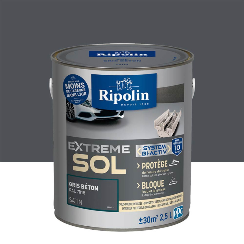 Peinture Ripolin extreme sol gris béton RAL 7015 satin 2,5 L