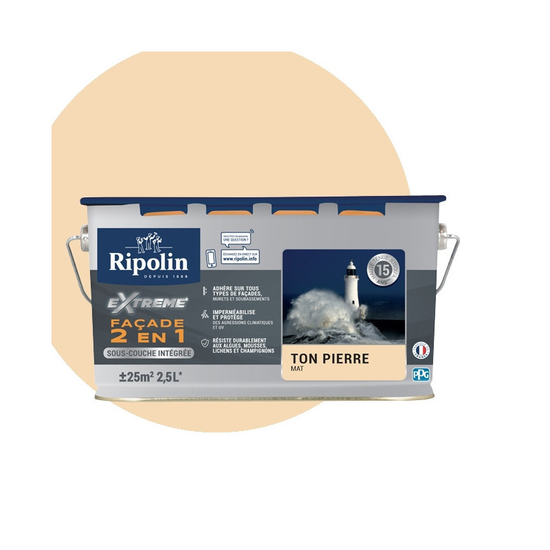 Peinture Ripolin extrême façade 2 en 1 pierre mat 2,5L