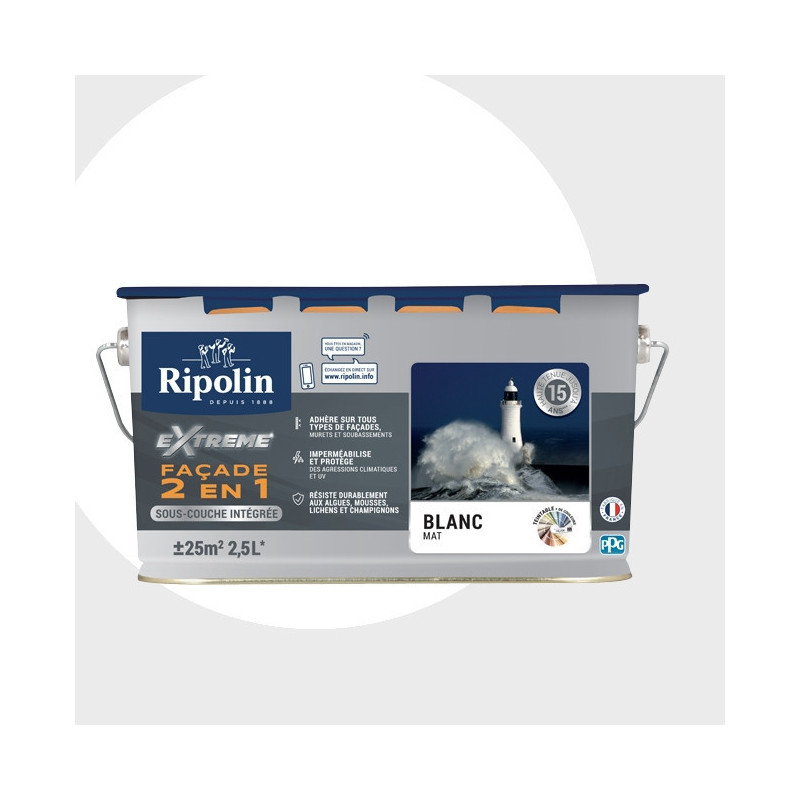 Peinture Ripolin extrême façade 2 en 1 blanc mat 2,5L