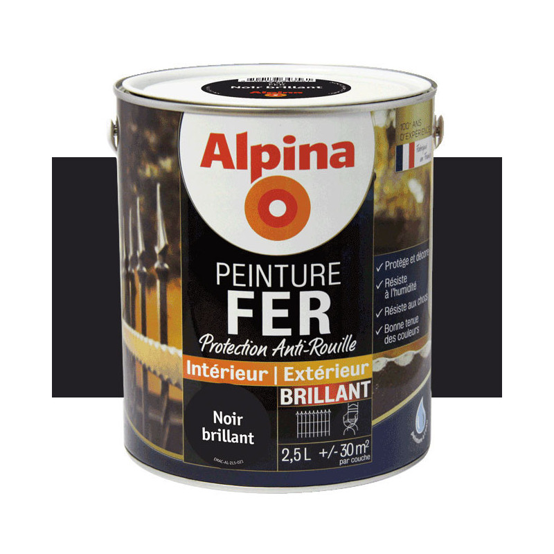 Peinture alpina antirouille spéciale fer noir brillant 2,5L