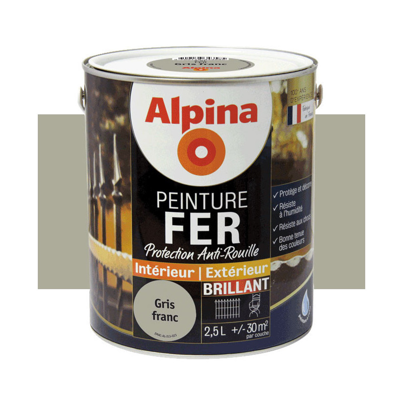 Peinture alpina antirouille spéciale fer gris franc brillant 2,5L