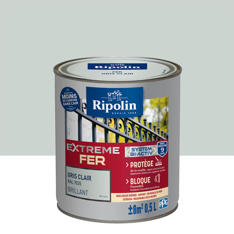 Peinture Ripolin extreme fer glycero gris clair brillant 0,5 L