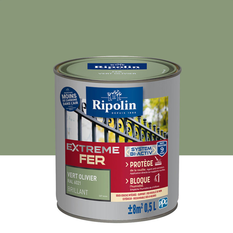 Peinture Ripolin extreme fer glycero vert olivier brillant 0,5 L