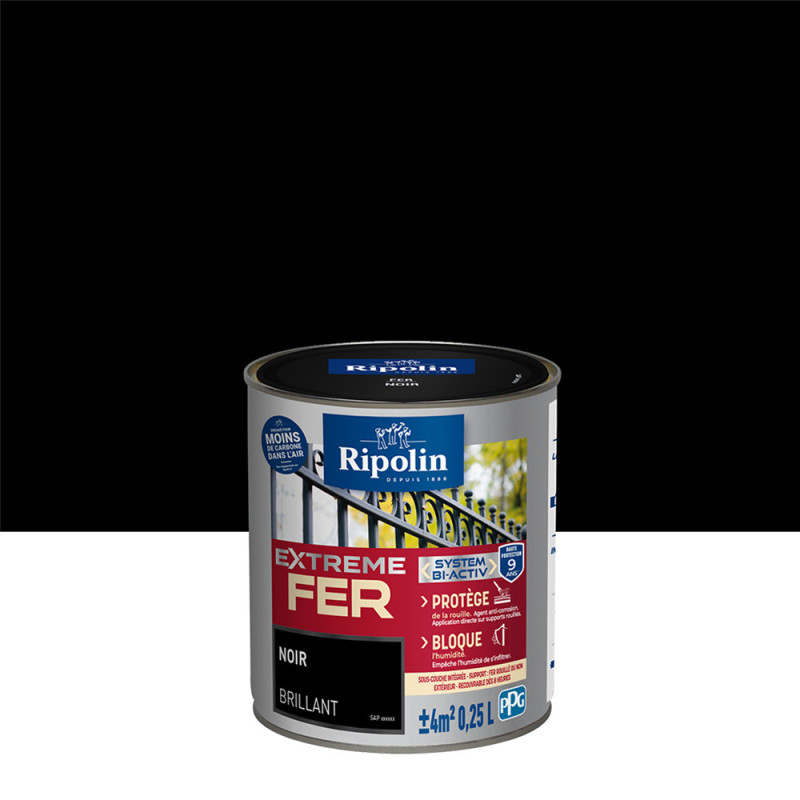 Peinture Ripolin extreme fer glycero noir brillant 0,25 L